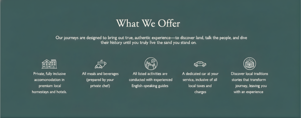 Spend the afternoon at the Rabdentse and Pemayangtse sites. This curated walkthrough focuses on storytelling centered around governance, power, and historical shifts. Enjoy a slow lunch at a private, view-facing café. The final evening is dedicated to “Executive Decompression,” featuring a luxury spa or sound therapy session, a closing gratitude ritual, and a farewell fine-dining experience.